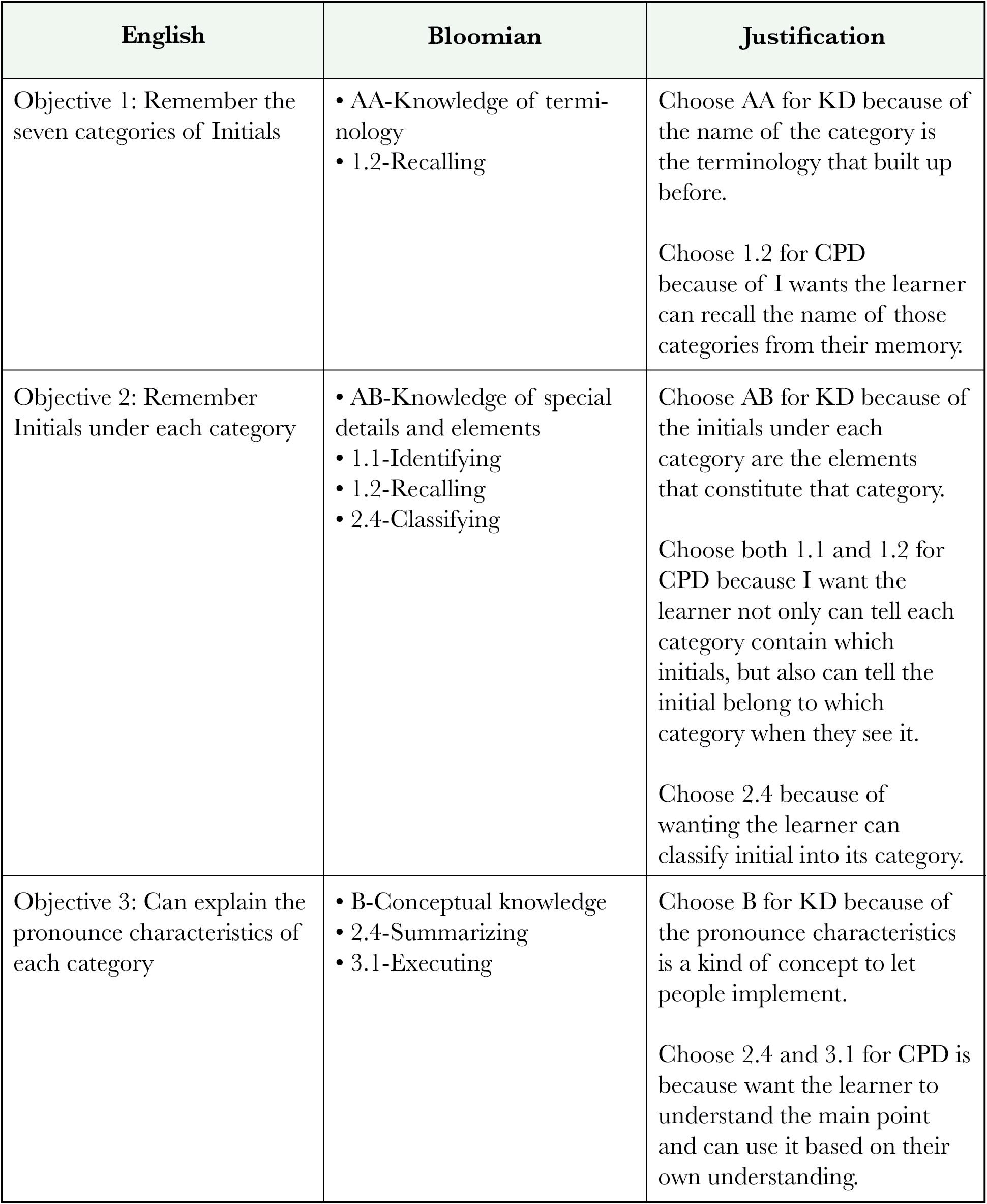 Table 1. Learning Objects in English and in Bloom’s Taxonomy With Explanation (Includes Cognitive Process Dimension and Knowledge Dimension)