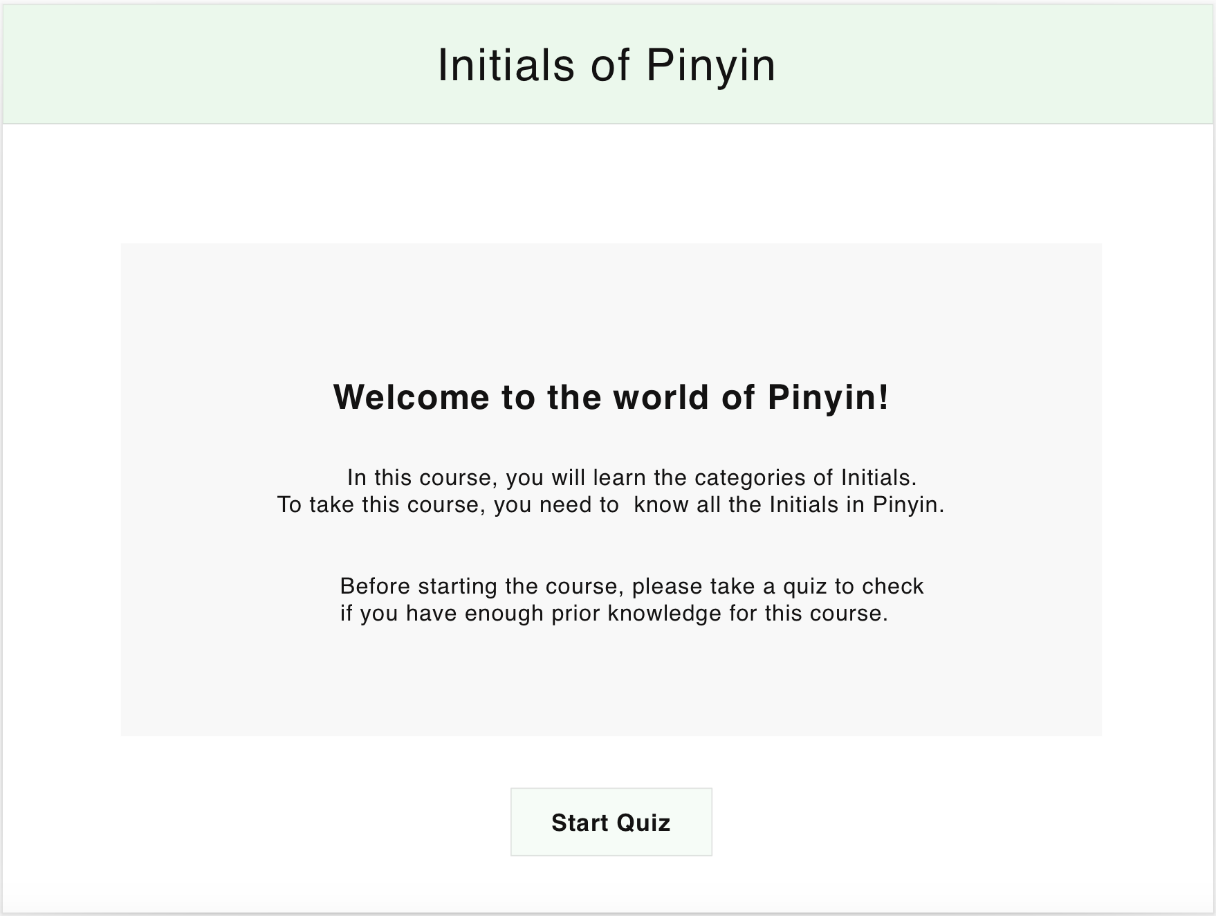 This e-learning module is designed for users who are already familiar with all of the pinyin initials and seek to gain a deeper understanding of the categorization of initials.