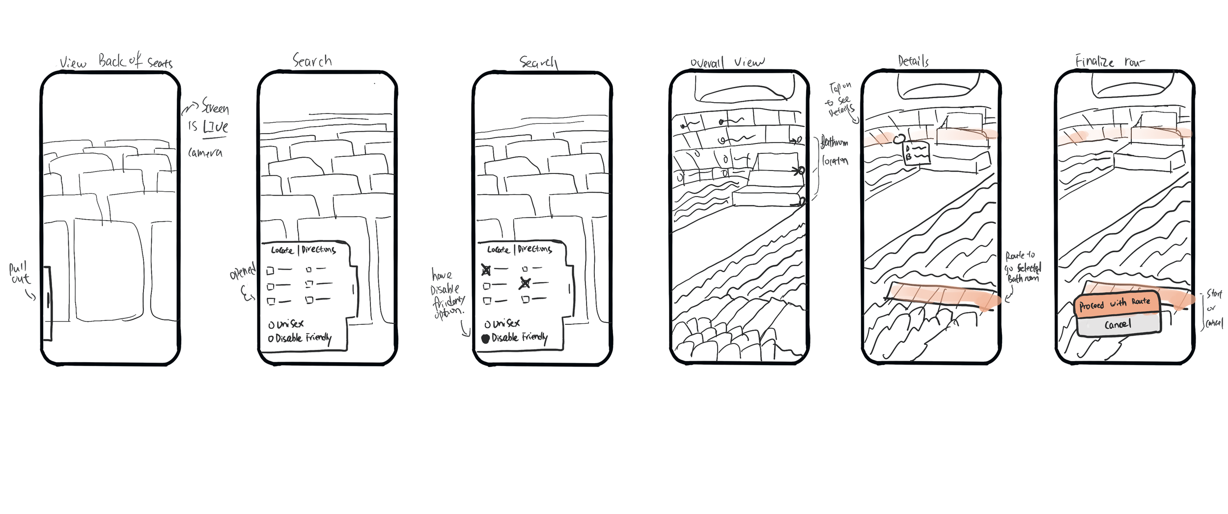 Task 2: an older user who is in a wheelchair and has to use our app to find an accessible way to his seat and also to a disability friendly restroom.
